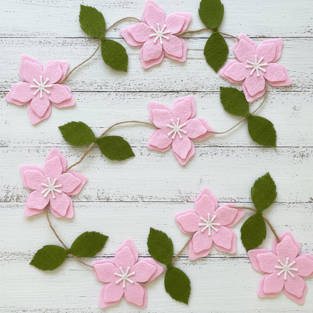- Pink Flowers Felt Garland - made of high-quality soft felt, measures approximately 8.2 feet