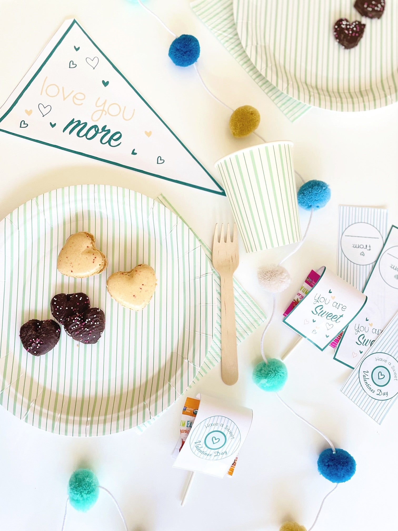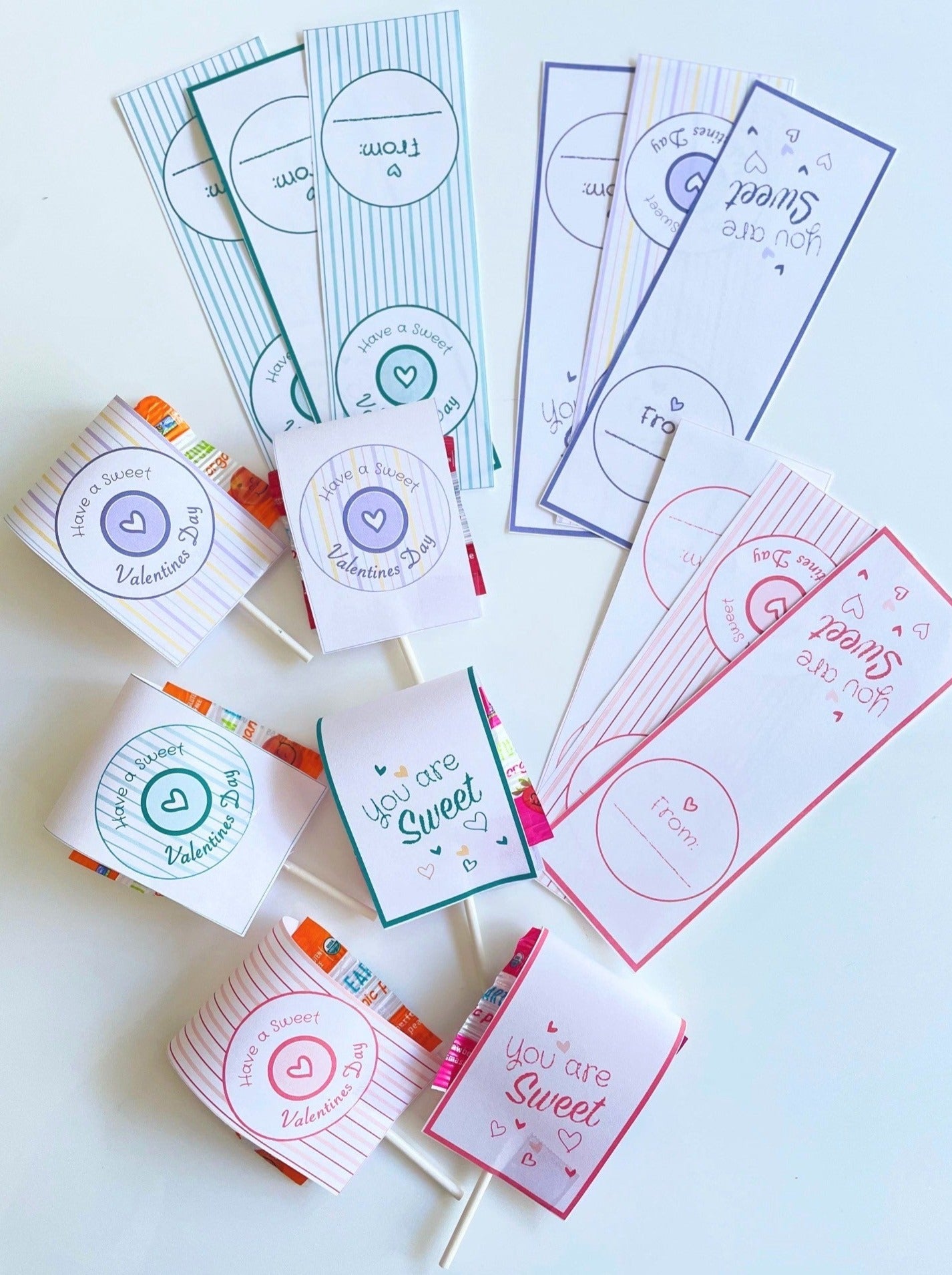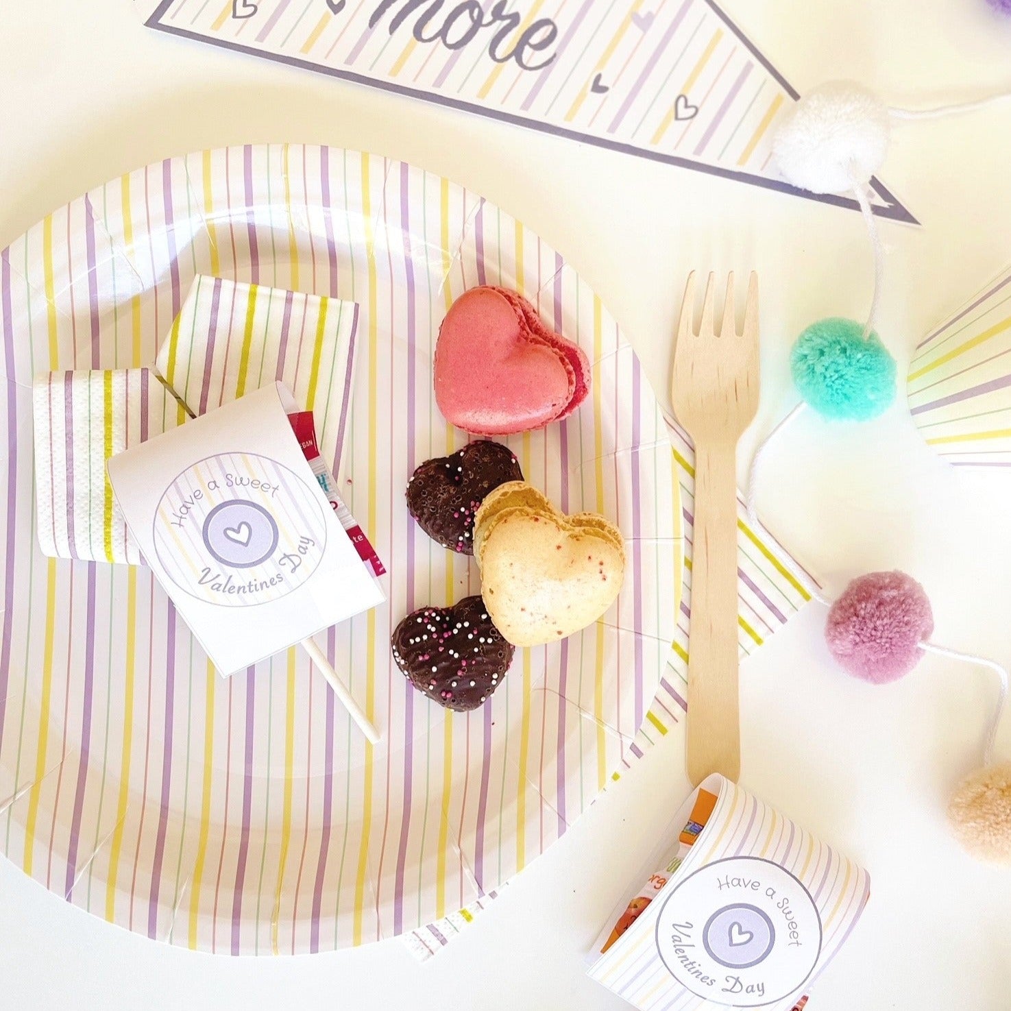 These cute Valentines day lollipop covers and pennant flag make a great and easy Kids Valentines Treats for school or for a Party. Add the matching pennant flags for an instant sweet decoration! Combine with Pooka Party Pink, Multicolor or Mint Stripes Plates, Cups and Napkins for a stylish, fun and affordable decoration. Designed by Pooka Party.