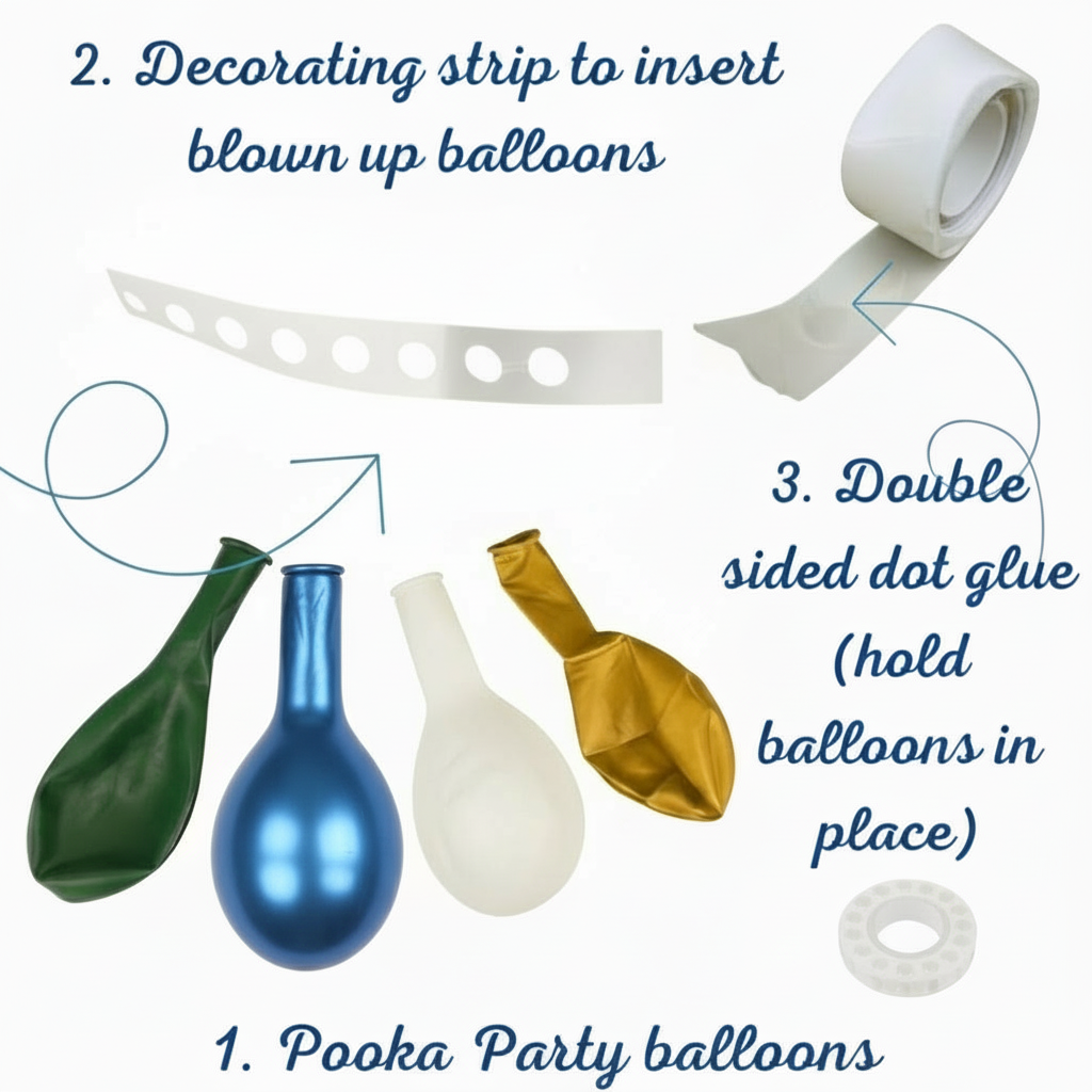 Forest Green, Blue Confetti, Gold DIY Balloon Garland Kit - 40 assorted latex balloons; 1 PCS balloon garland decorating strip measuring 16 feet; 1 PCS double sided dot glue tape (contains 100 dots)