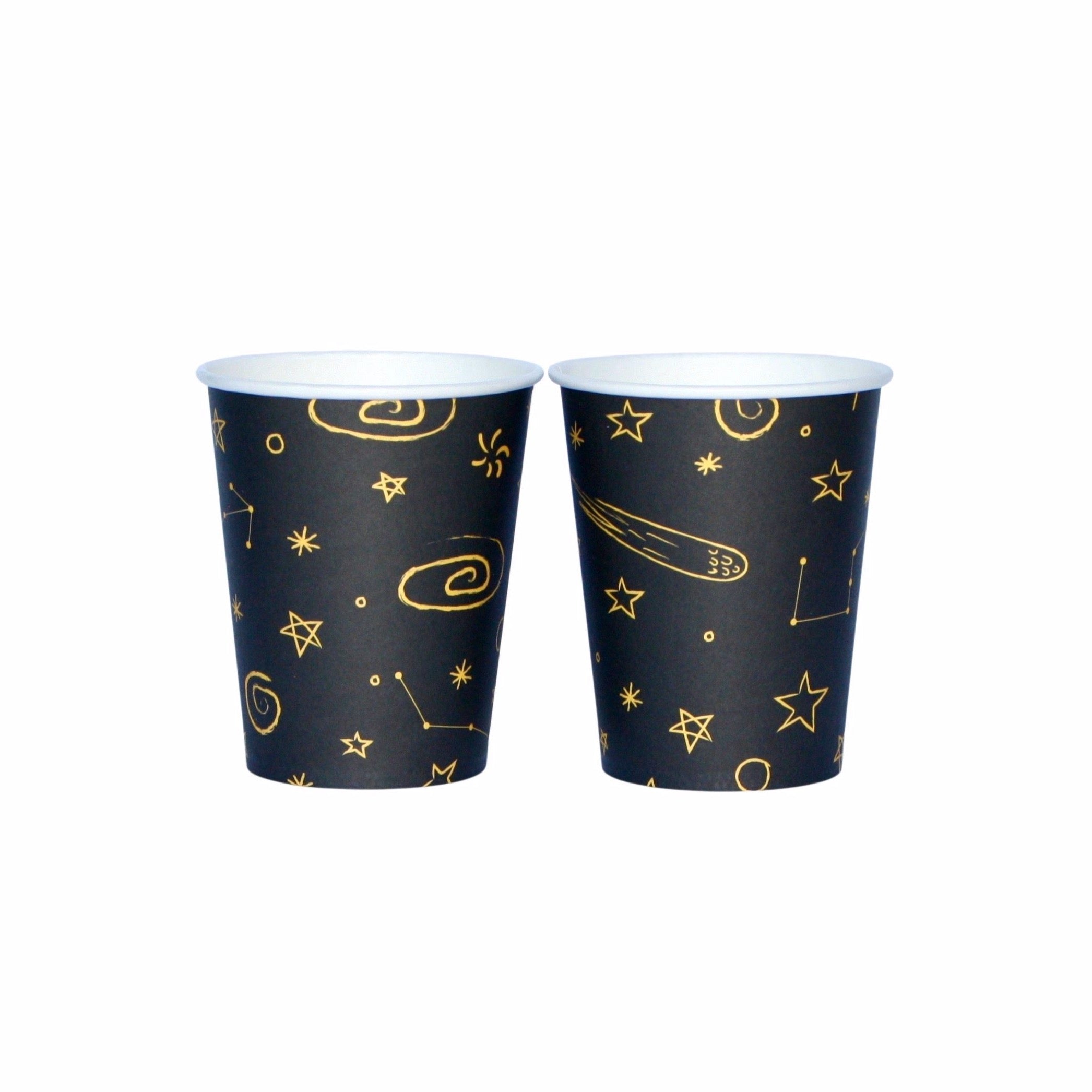 Featuring yellow and dark colors, these cups are inspired on space adventures and will take your decoration to another dimension!