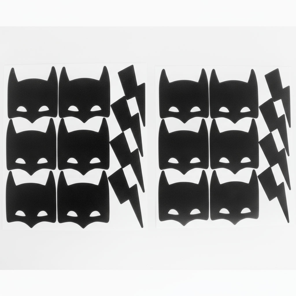 Features superhero masks and lightning bolts. These vinyl decals will make your party décor the most powerful! These can be easily applied or removed, leaving no residue to your walls. It can be reused in your kids room or playroom, so the magic stays beyond the party day!